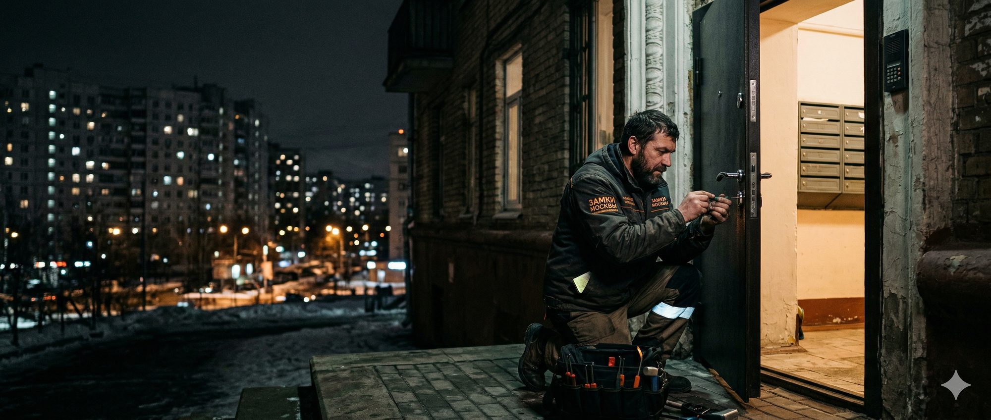 Аварийная служба с PIN-кодом клиента, живой картой мастера и кодом тревоги. Приезд 15 минут. Без повреждений. Гарантия 5 лет.